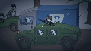 Pre-Game plays as Henry drives away in a truck, and is chased by several guards. It is 4 minutes and 23 seconds long and composed by MrStr8face/BiTSTER.